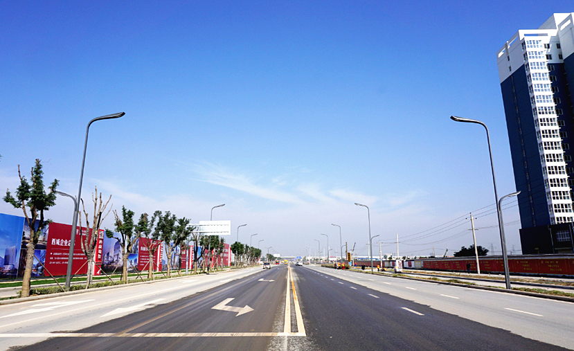 2016年10月,為進(jìn)一步助推西咸新區(qū)建設(shè),華體照明參與西咸新區(qū)道路照明改造項目,全新的21套四叉五火玉蘭燈安裝在西咸城投集團(tuán)公司門口,燈型大氣簡潔,更加契合西咸新區(qū)的整體規(guī)劃風(fēng)格。由于新區(qū)道路還在修建中,所以此次路燈安裝采取一邊修建道路一邊安裝路燈的方式來進(jìn)行。