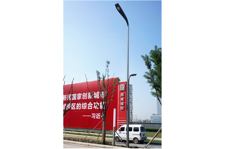 183套雙葉燈則安裝在西咸城投集團(tuán)門口道路——上林路。雙葉燈,是以象征禮節(jié)的“茶葉”為元素,融入現(xiàn)代簡潔的線條,時尚有韻味。燈頭采用茶葉瓣的形式,實現(xiàn)了燈桿與燈頭的實體連接,兼顧功能照明和景觀照明。