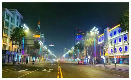燈桿中部加裝無極管,七彩追光變色,給美麗的什邡增添一份濃濃的新春氛圍。