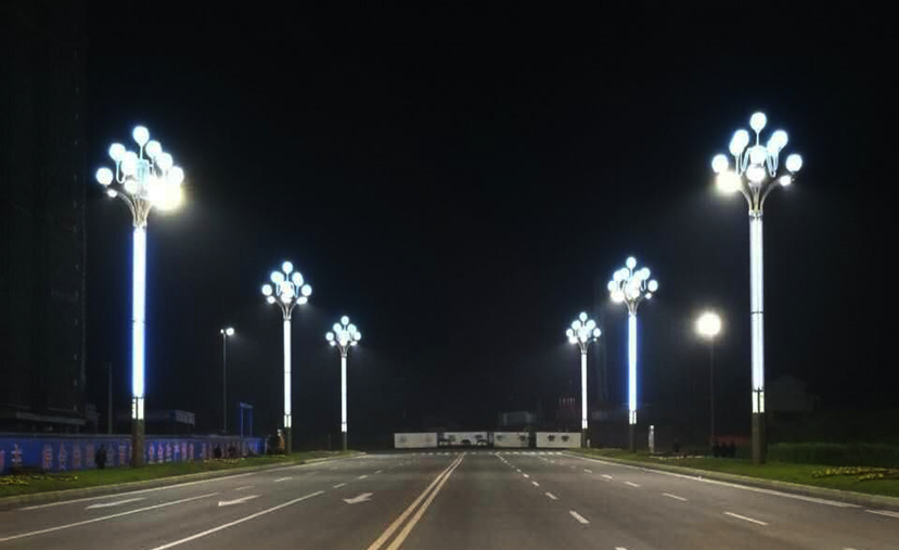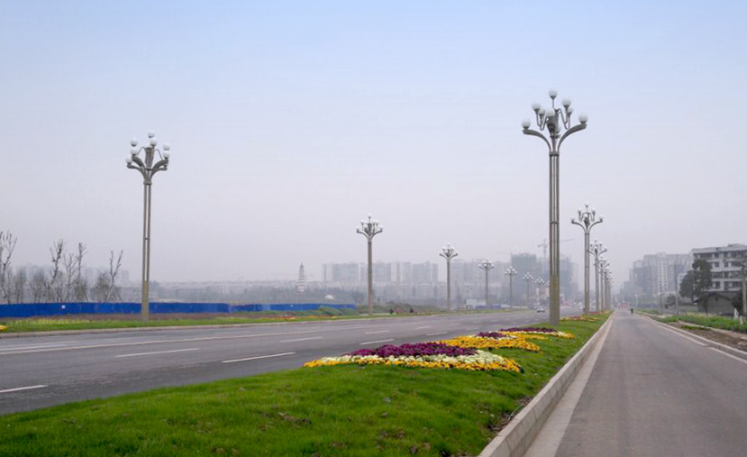 為進(jìn)一步加快營山縣的提檔升級,提升城市整體形象,2017年1月,南充市營山縣城芙蓉大道一段道路照明工程正式啟動。華體照明根據(jù)營山縣的道路特點和文化元素,設(shè)計并安裝了15.08米三層芙蓉中華燈。