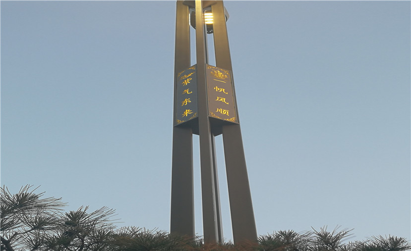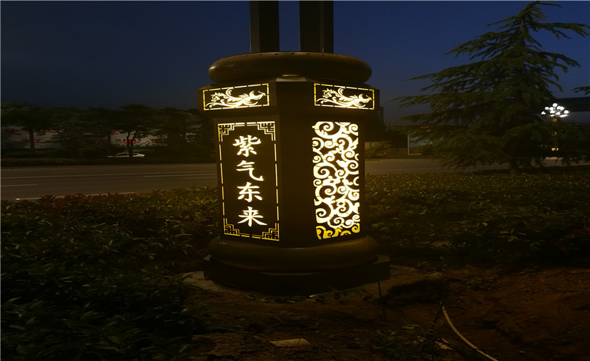 渭南是中華民族和華夏文明的發(fā)源地,因此,在此次設(shè)計中,在燈桿中部燈箱和底座設(shè)計上,均融入了祥云和鳳凰元素,并雕刻有“一帆風(fēng)順、紫氣東來”的字樣,整體造型簡潔大氣,富有層次感。