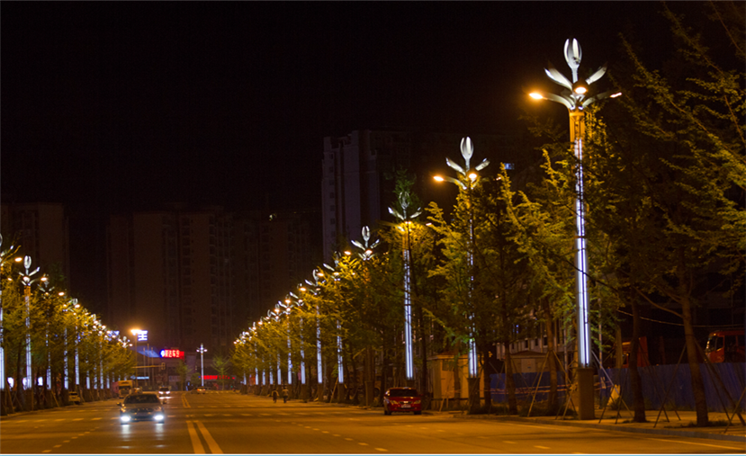 為進一步完善城市照明效果,鞏固建設(shè)成果。營山縣公共事業(yè)管理局于2016年底至2017年初對民政局至一環(huán)路南北段以及芙蓉大道一段進行了整體的道路照明路燈升級改造,四川華體照明科技股份有限公司根據(jù)兩條道路的基本情況,結(jié)合當(dāng)?shù)匚幕厣?,分別設(shè)計并安裝了春意盎然景觀燈和芙蓉中華燈。