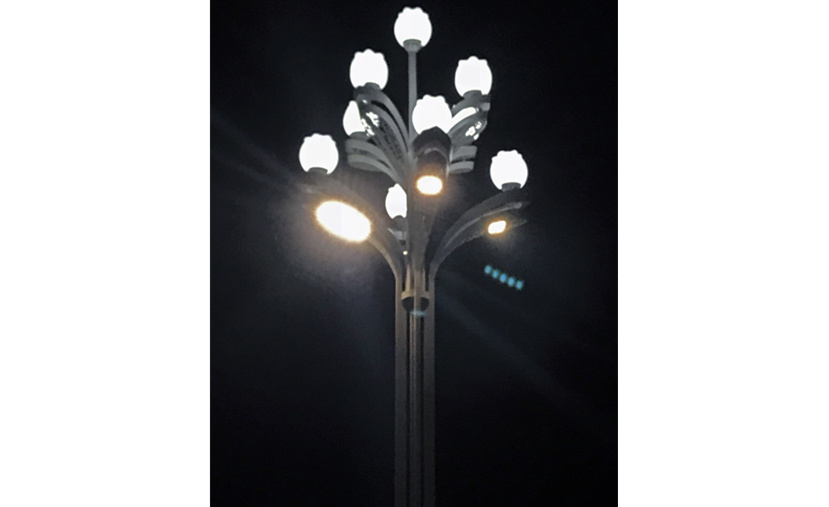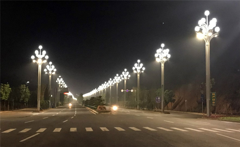芙蓉?zé)舾?5.08米,燈型在滿足傳統(tǒng)道路照明的同時(shí),燈頭頂部創(chuàng)造性地采用芙蓉花造型作為裝飾光源,給傳統(tǒng)的道路照明賦予景觀亮化功能,大大提升了高新大道的道路美觀程度。 此次芙蓉?zé)羧坎捎肔ED光源,主干道采用250瓦LED光源,輔道采用100瓦LED光源,在保證道路照明照度和亮度的同時(shí),還可以大大減少能耗支出。 芙蓉?zé)粞b扮于益陽(yáng)東部新區(qū)主干道兩旁,在提升益陽(yáng)城市形象的同時(shí),也為更好更快地實(shí)現(xiàn)益陽(yáng)市加快對(duì)接長(zhǎng)株潭奠定了基礎(chǔ)。