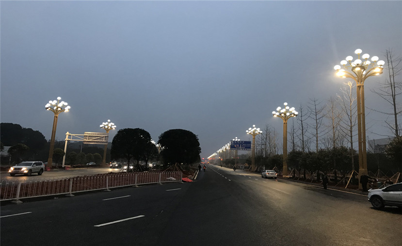 “芙蓉朝暉”以芙蓉花為元素進(jìn)行設(shè)計(jì),芙蓉花是湖南省的省花,燈葉在保證道路照明基礎(chǔ)上,頂部的裝飾性照明,根據(jù)芙蓉花的外形進(jìn)行設(shè)計(jì),體現(xiàn)出湖南特色,美觀又端莊。