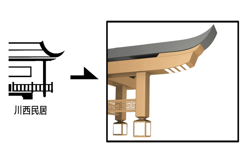 紅旗燈的燈頭部分,通過提取紅旗飄揚的流線型,紅旗飄揚預示著勝利,也能很好地體現(xiàn)紅色文化的歷史意義。