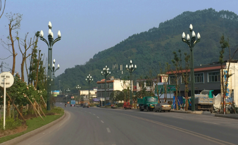 該燈體顏色也根據(jù)宜賓珙縣區(qū)域性進(jìn)行了定制,提取于蜀南竹海的翠綠竹色元素,呈現(xiàn)墨綠色,與道路兩旁的翠竹交相輝映。燈是傳遞光明的使者,安于珙縣迎賓大道的四叉五火玉蘭燈,歡迎來五湖四海的游客,可愜意的觀光蜀南竹海的幽深、清麗、秀雅的大自然之美。