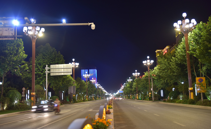??诮瓥|新區(qū)主干道的這些路燈,有“飛”一般的感覺
