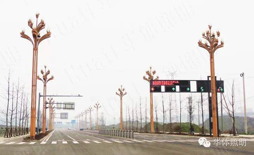 玉蘭燈,系華體照明精心打造的景觀照明路燈,兼顧景觀性與功能性,矩桿中間加載有可變色節(jié)日氛圍燈,營造出熱鬧的節(jié)日氛圍,節(jié)日氛圍燈的下方,鏤空的靈猴嬉戲圖活潑生動憨態(tài)可掬,在色彩變幻的LED貼片燈的照射下更加清晰靈動,帶給剛踏進(jìn)峨眉之地的游客驚喜。