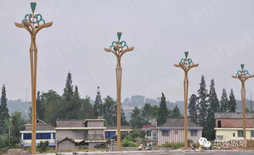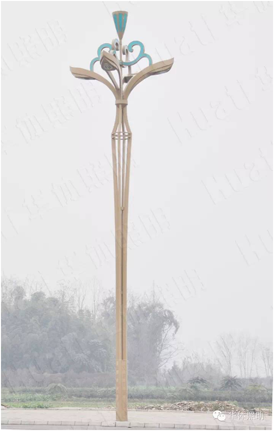 瓦屋山是古蜀著名的道教仙山,而在道教中蓮是修行者的象征,是翩翩君子的象征,因此本次景觀照明路燈選取了蓮花植物造型,并命名為金荷。2014年9月,由華體照明傾力打造的139盞金荷整齊的安裝在瓦屋山大道兩旁。金荷燈高15米,采用花瓣與燈臂的結合,燈具頂部“蓮蓬”生動形象,花紋流暢,將蓮花的婉約風姿展現(xiàn)得淋漓盡致;燈桿底座激光陽刻“綠海明珠,天府花園”字樣,底部融入水紋式樣,復古生動,似蓮生水中。