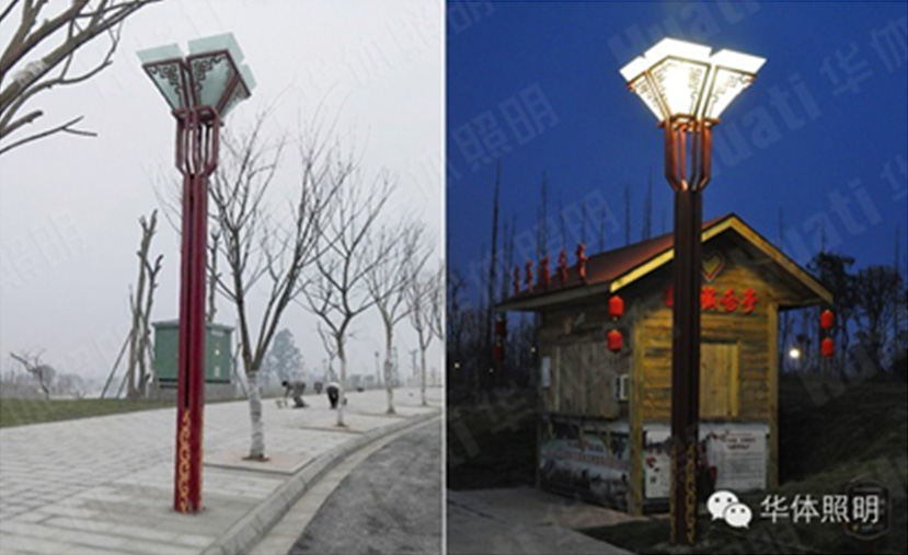 2014年12月31日,東坡城市濕地公園正式開園,隨之一起亮相的,是點亮美麗夜色的景觀照明庭院燈—耀?!耙睙簦扇A體照明精心打造,集照明功能與景觀觀賞性于一體。130盞耀沿著湖濱道路蜿蜒延伸,磨砂玻璃制成的“糧斗”造型燈頭,給人以豐衣足食的即視感,燈頭外文化定制窗格紋鐵花,蘊含眉山市獨有的東坡式宋文化 ,意境獨特耐人尋味。