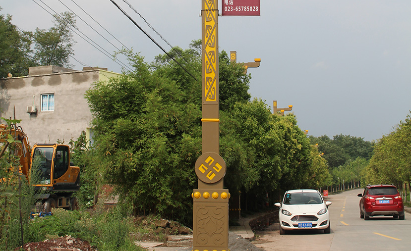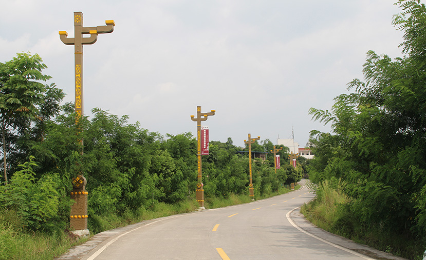 陶家鎮(zhèn)(白彭路至西池度假村道路段)道路景觀燈改造,安裝了由四川華彩照明工程設(shè)計有限公司設(shè)計研發(fā)的一款“漢斗”景觀燈。